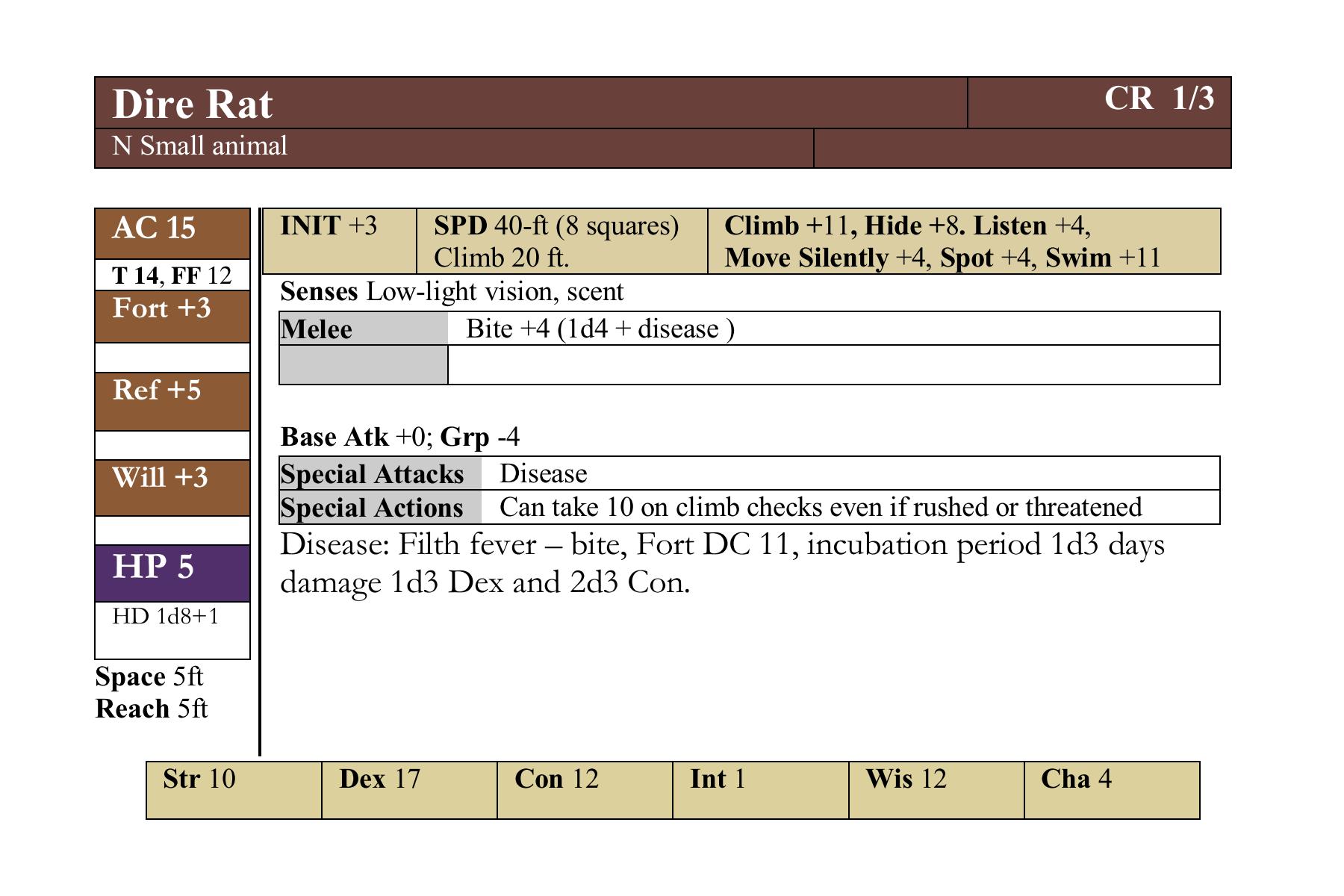 D&D 3.5 – Cranium Rat Swarm – scalable to any level!