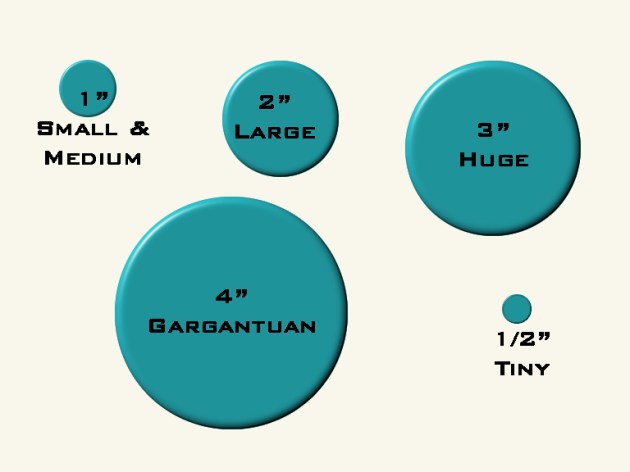 Playing on a grid where one inch = 5 feet, I want to mount the miniatures onto round bases. A one inch diameter base will just fit into a one inch square and is the size for a medium creature. This table shows the size of bases I need for my dinosaurs.