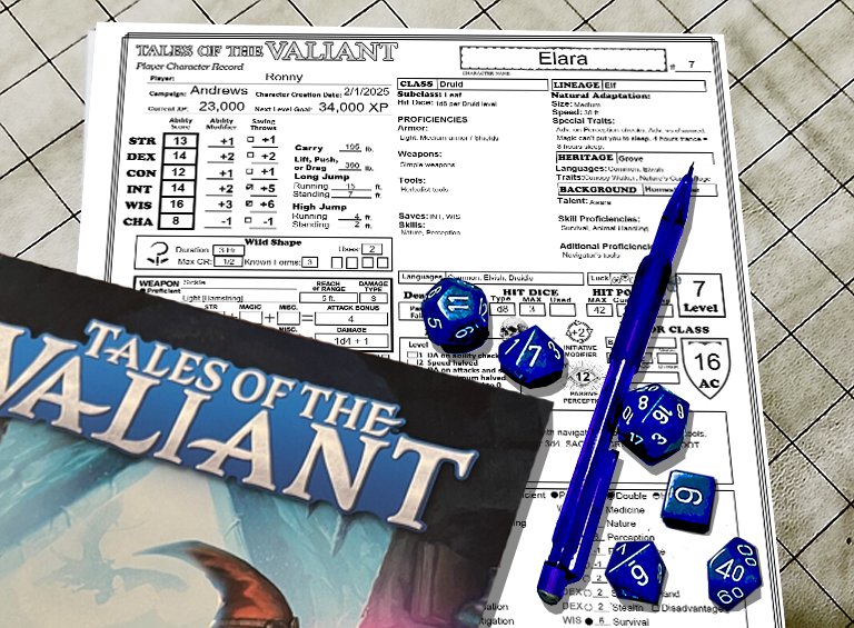 Last month I posted my updated character sheet for D&D 5.5. This is a similar character sheet specifically for “Tales of the Valiant”.