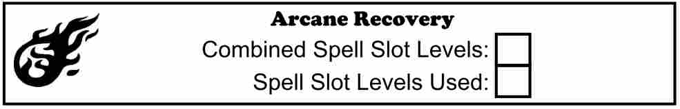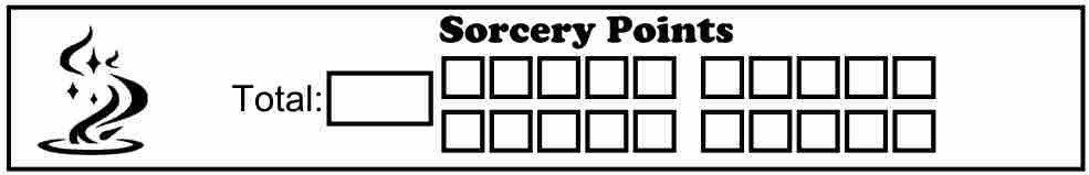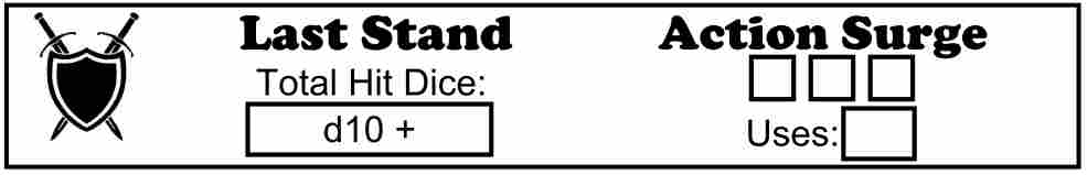 The content of this box will change depending on your character’s Class (number 7). It shows certain traits for the selected class that change based on class level and/or abilities and provides check boxes to track uses of limited use features. If no class is selected, or anything is entered into the Class box (number 7) other than what can be selected from its drop-down box, this will show the default Class Feature box which only shows a stylized die and contains an empty text box where you can enter any notes you may want.